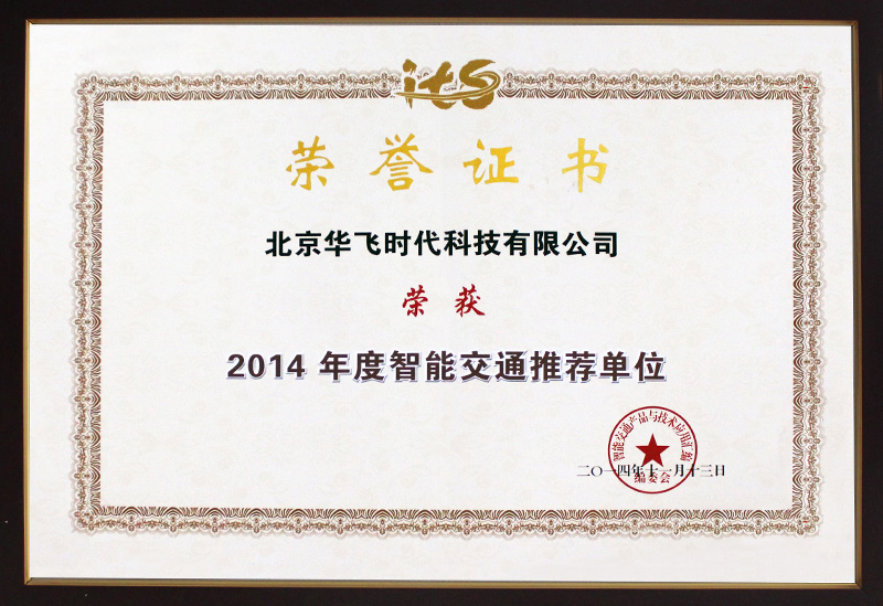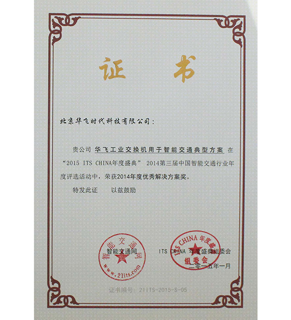 2014智能交通網(wǎng)解決方案獎證書